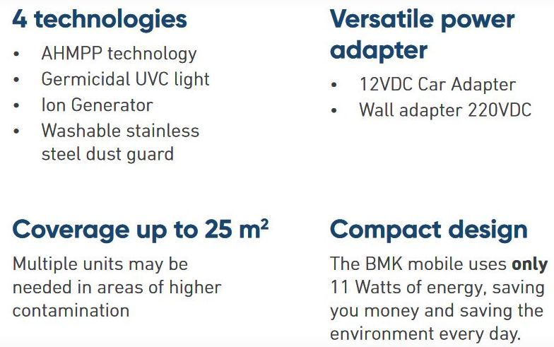 El dispositivo móvil BMK es ideal para eliminar hasta el 99% de bacterias